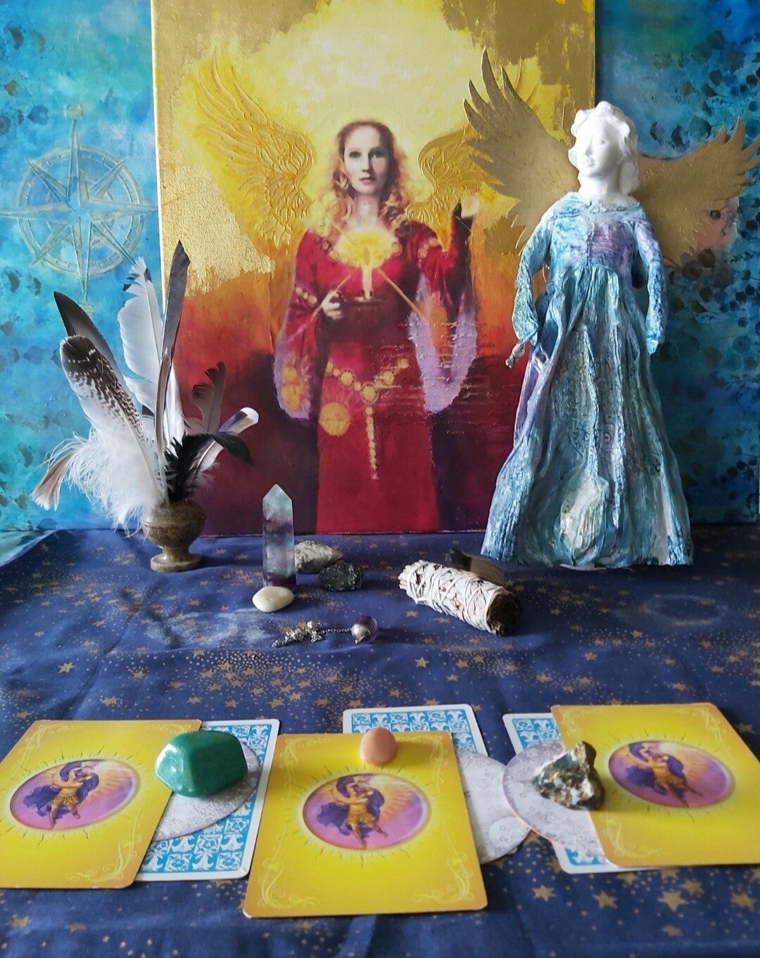 jeg brukte kunsten og hjelp fra mine guider og engler til å finne veien frem gjennom mørket . min far som forlot denne verden i 2013 har også vært en stor veiviser og støtte gjennom tunge tider.